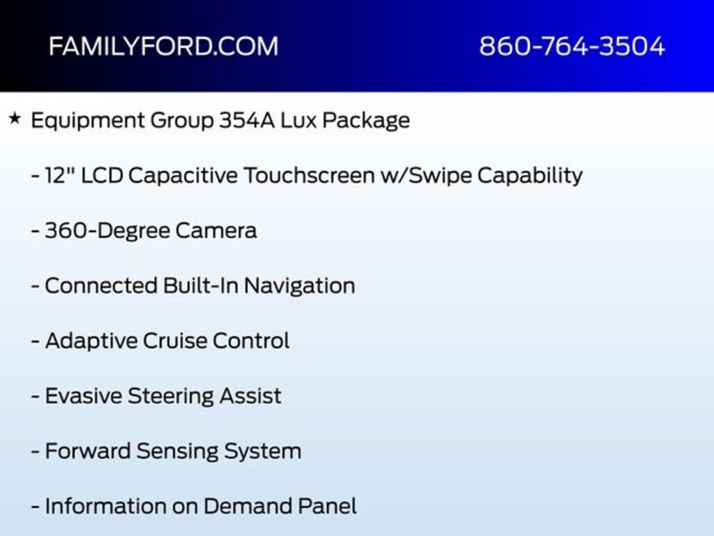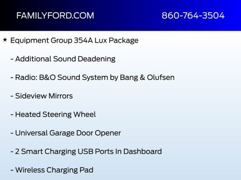 The Lux Package (Equipment Group 354A) adds premium amenities including a heated steering wheel, heated front seats, additional sound deadening, adaptive cruise control, evasive steering assist, universal garage door opener, and smart charging USB ports.