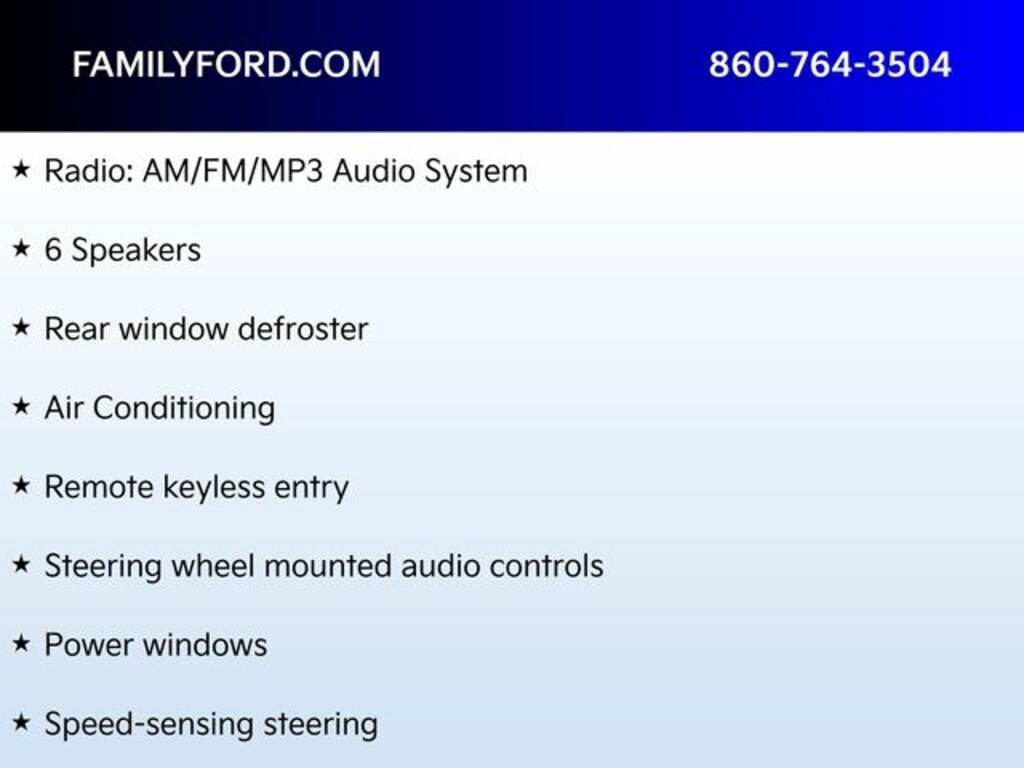Technology & Connectivity: AM/FM/MP3 audio system with 6 speakers, Apple CarPlay & Android Auto, steering wheel-mounted audio controls