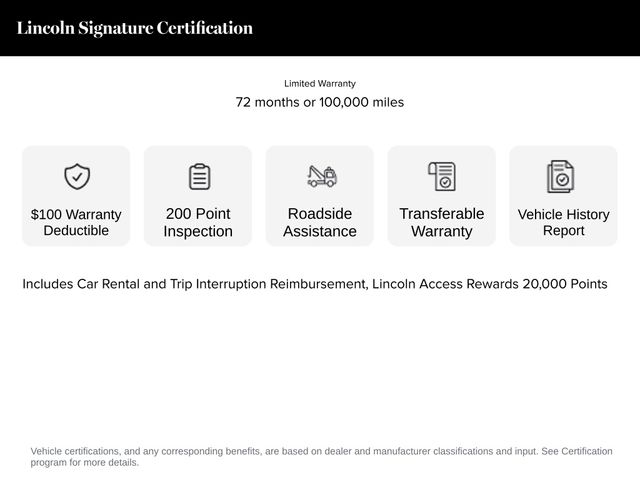 The 2022 Lincoln Nautilus Black Label in Infinite Black Metallic Clearcoat presents itself as a refined and confident luxury SUV, powered by a 2.7liter twin turbo charged V6 paired with an 8speed automatic transmission and all wheel drive. As a Lincoln Signature Certified vehicle, it carries the assurance of a comprehensive 200point inspection, a transferable warranty with a $100 deductible, and coverage extending up to 72 months or 100,000 miles from the original in service date. The certification also includes roadside assistance, rental car and trip interruption benefits, Lincoln Access Rewards points, and a verified vehicle history.
