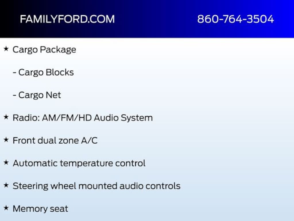 20" x 8J Aluminum Alloy Wheels, 3.841 Axle Ratio, AppLink/Apple CarPlay and Android Auto, Auto High-beam Headlights, Auto-dimming Rear-View mirror, Automatic temperature control, Cargo Blocks, Cargo Net, Cargo Package, Delay-off headlights, Exterior Parking Camera Rear, Front dual zone A/C, Fully automatic headlights, Garage door transmitter: HomeLink, Heads-Up Display, Heated & Ventilated Front Bucket Seats, Heated door mirrors, Heated front seats, Heated steering wheel, Leather Seat Trim, Memory seat, Panic alarm, Power door mirrors, Power driver seat, Power moonroof, Power passenger seat, Radio: AM/FM/HD Audio System, Rain sensing wipers, Remote keyless entry, Speed control, Steering wheel mounted audio controls, Ventilated front seats.
