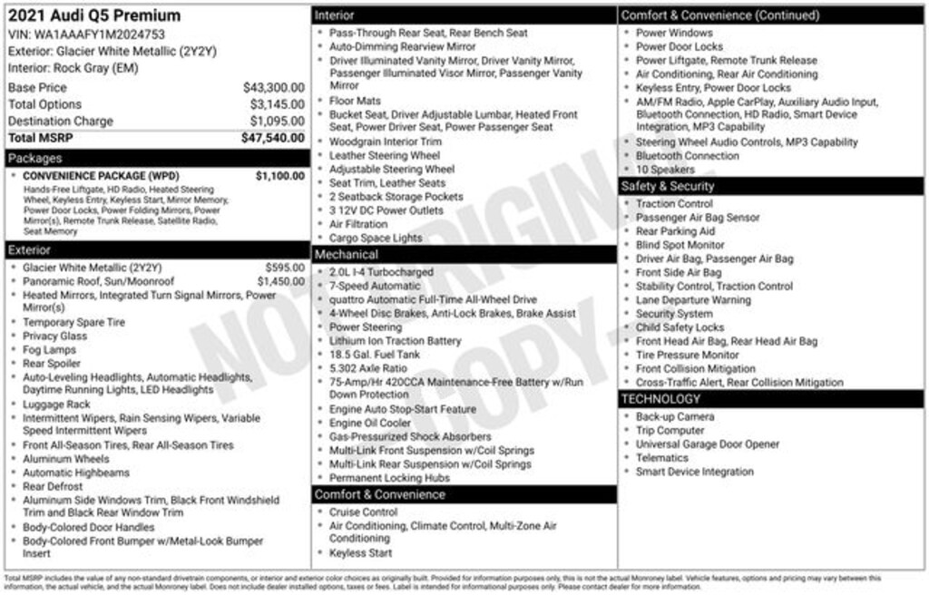 View this 2021 Audi Q5SUV 45 Premium for sale at Shaker's Family Lincoln in Watertown, CT