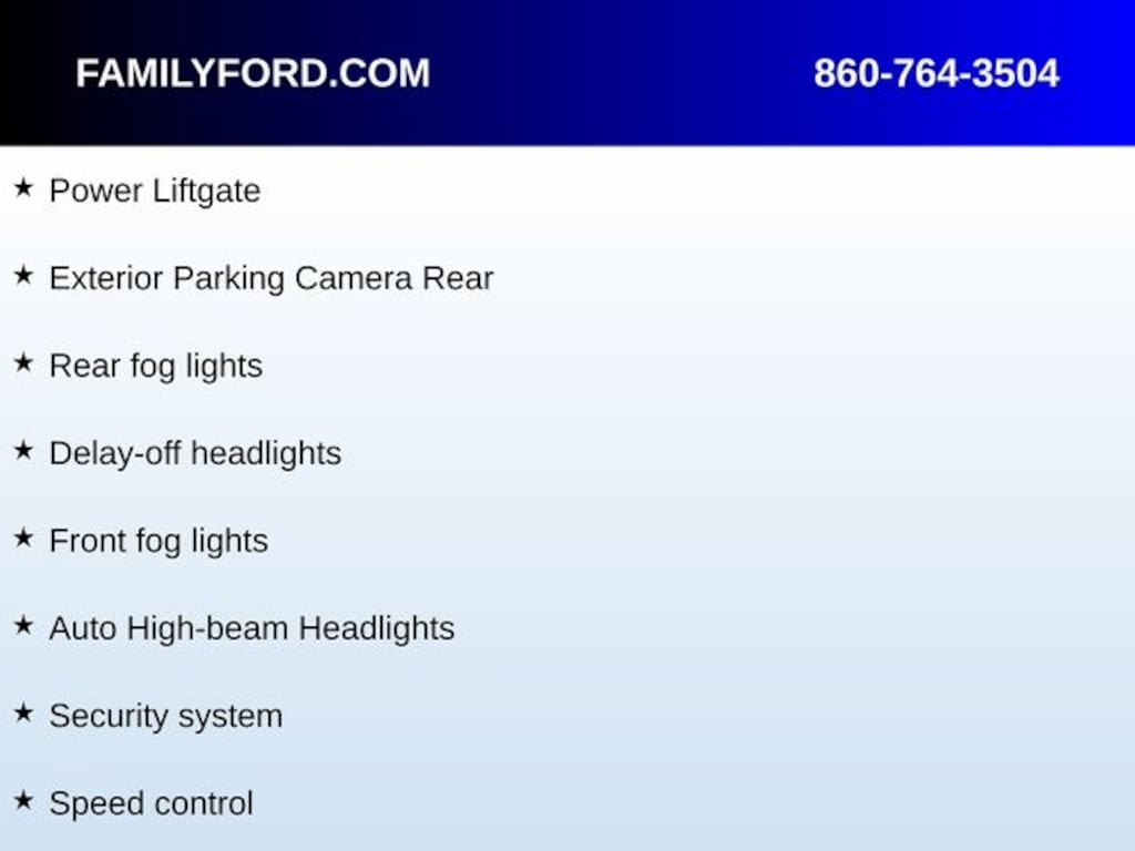 Safety & Convenience: Auto high-beam headlights, fully automatic headlights, exterior parking camera (rear), power liftgate, remote keyless entry, security system