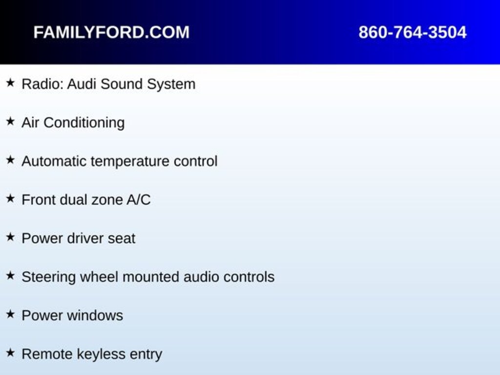 Technology & Connectivity: Audi Sound System, steering wheel-mounted audio controls, HomeLink garage door transmitter