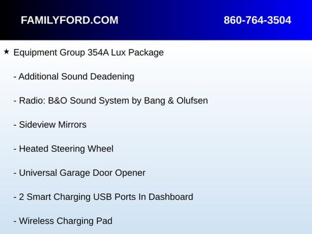 The Lux Package (Equipment Group 354A) adds premium amenities including a heated steering wheel, heated front seats, additional sound deadening, adaptive cruise control, evasive steering assist, universal garage door opener, and smart charging USB ports.