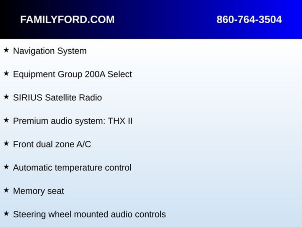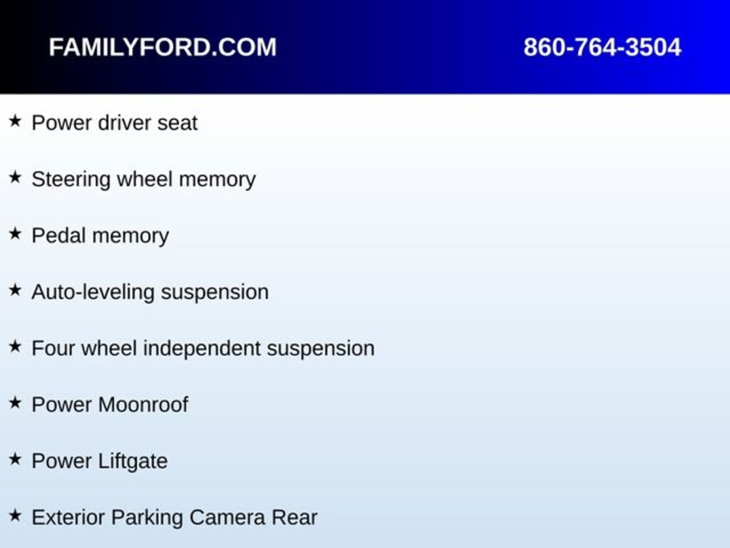 2nd Row 40/20/40 Leather Split Bench Seat, 3rd row seats: split-bench, Adjustable pedals, Auto-dimming door mirrors, Auto-dimming Rear-View mirror, Auto-leveling suspension, Automatic temperature control, Delay-off headlights, Equipment Group 200A Select, Exterior Parking Camera Rear, Four wheel independent suspension, Front dual zone A/C, Fully automatic headlights, Garage door transmitter: HomeLink, Heated door mirrors, Heated front seats, Heated rear seats, High-Intensity Discharge Headlights, Illuminated entry, Memory seat, Navigation System, Panic alarm, Pedal memory, Power door mirrors, Power driver seat, Power Liftgate, Power Moonroof, Power passenger seat, Premium audio system: THX II, Premium Leather Low Back Bucket Seats, Rain sensing wipers, Reclining 3rd row seat, Security system, SIRIUS Satellite Radio, Speed control, Speed-Sensitive Wipers, Steering wheel memory, Steering wheel mounted audio controls, Telescoping steering wheel, Tilt steering wheel, Ventilated front seats, Wheels: 20" Ultra Brite Machined Aluminum.